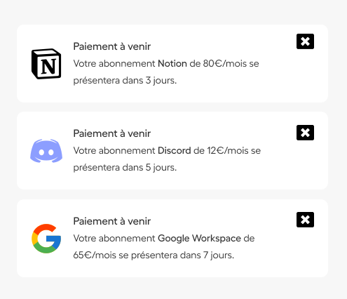 Fini le temps où vous suivez vos abonnements et vos paiements récurrents sur un Google sheet ou un Notion.